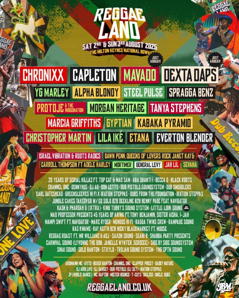 Official Reggae Land UK 2025 Lineup — From Chronixx to Marcia Griffiths, Mavado to Tanya Stephens. This is more than a show. This is cultural legacy in motion.